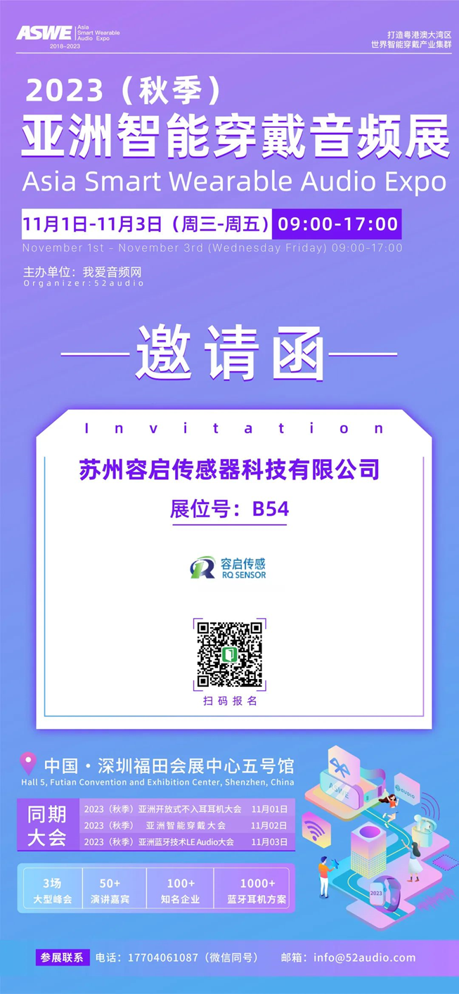 容启传感参加2023(秋季)亚洲智能穿戴音频展,展位号B54